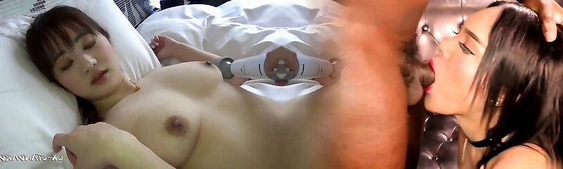 A slim Japanese beauty with brief black hair is caressed with an electric massage machine and gives a blowage