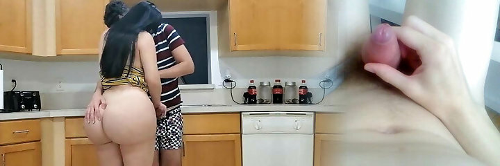 Sexy big boobs Mom catches her stepson jacking off to porn