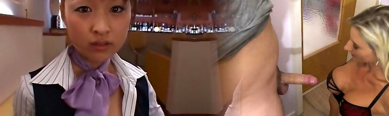 Sex hungry cook kittles wet kitty of sweet waitress with sushi sticks