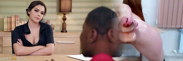 Ponytailed nerdy brown-haired Eva Angelina gets her twat fucked by black stud
