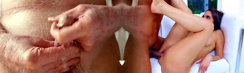 Japanese old man masturbation erect penis semen