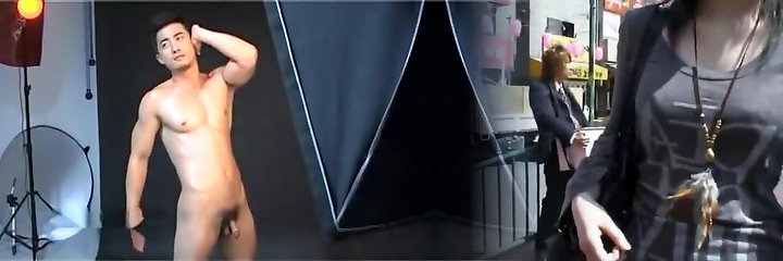 Asian Bodybuilder Tugging Prick