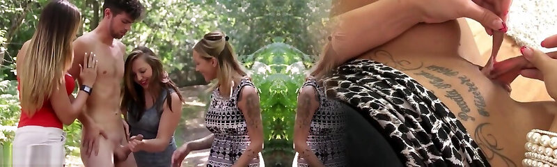 3 Curious Sexy British Babes Play With the Boy's Cock In Hot Outdoor CFNM Scene