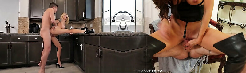 Mature plastic blonde Rebecca More gets a rough nail in the kitchen