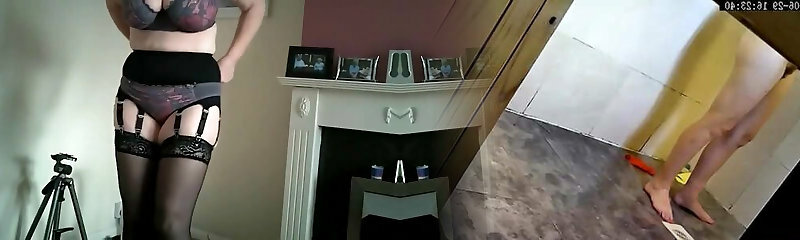 Sexy Milf drains in vintage lingerie nylons leather stilettos