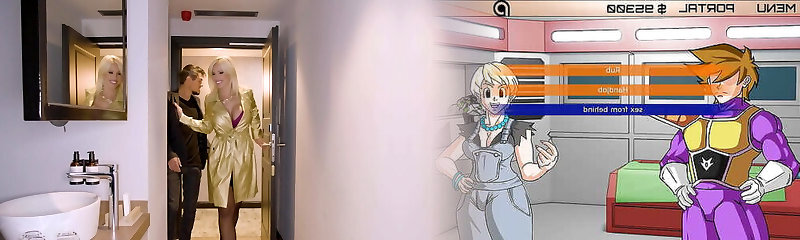 Really chubby light-haired hooker works on two heavy cocks in the brothel