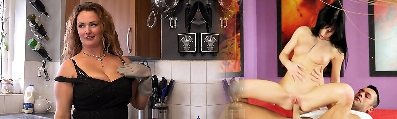 Mummy in stockings seduced her stepson in vaginal poking in the livin...