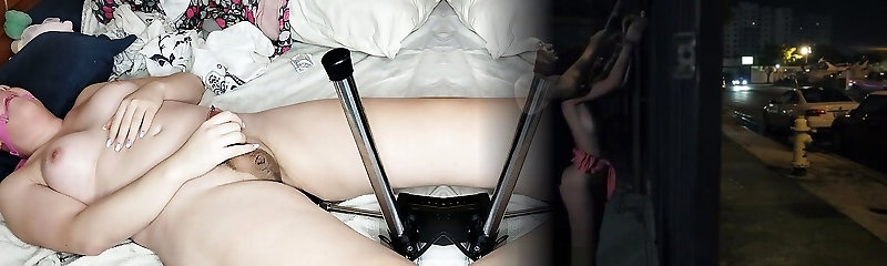 ( Jizz Show ) Fuck Machine And Big Dildo,laying On Side And Inserting Dildo,spread ,deep And Hardfuck