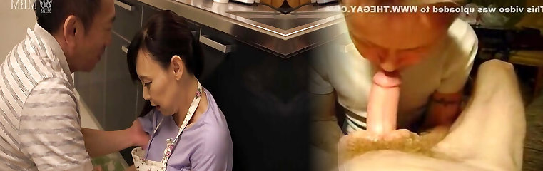 Mature Japanese housewife with good-sized nipples cuckolds her husband