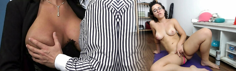 Your Chief: Jeny Smith plays the role of the boss. High heels, tights and mini skirt.