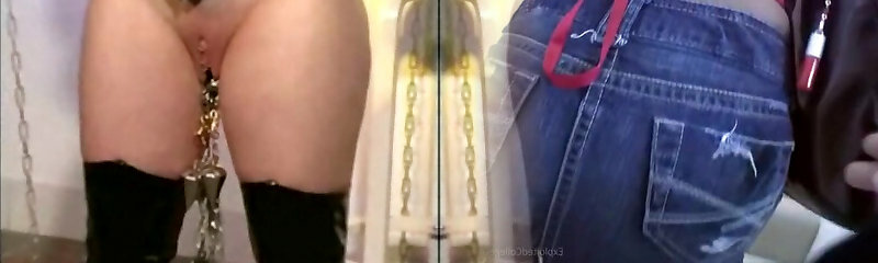 Heavy pierced marionette with weights on her pierced pussy