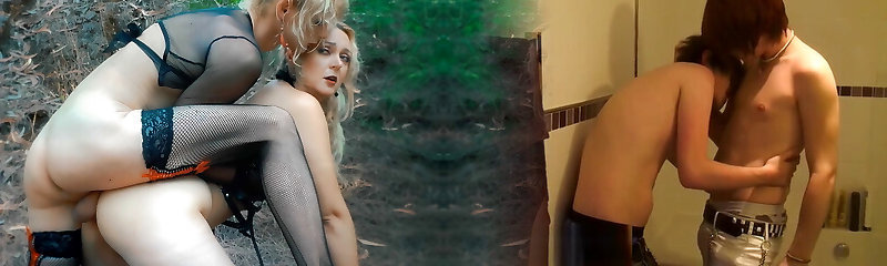 Sissiy guy fucked by two strapon hotties