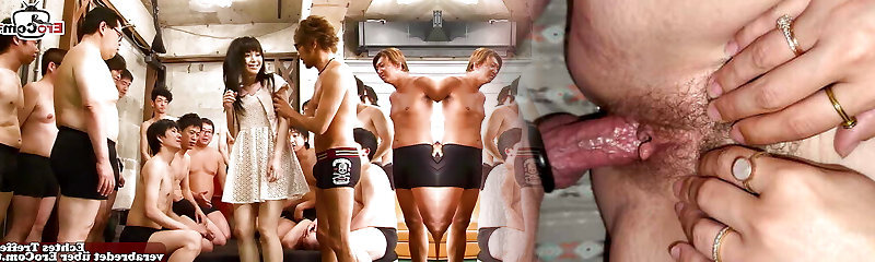 18yo Japanese skinny teen at creampie Gangbang party
