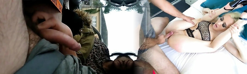 Exhibitionist fucks two blond babes Sarah Vandella and Giselle Palmer