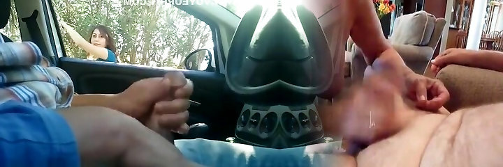 female flashing BF cock in car