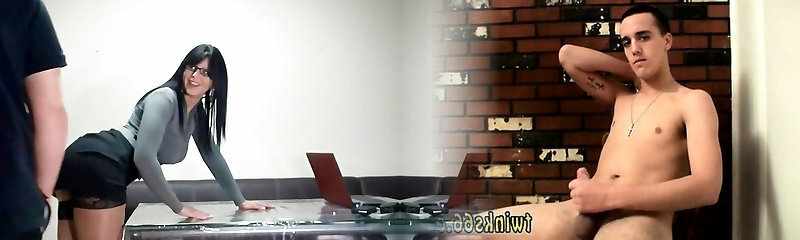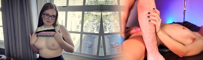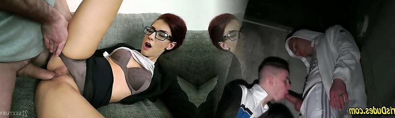 Brunette with glasses took off her red, satin shirt and had hook-up with her co- worker
