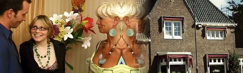 Mature with Platinum Hair Glasses and Stockings Wakes the Boy