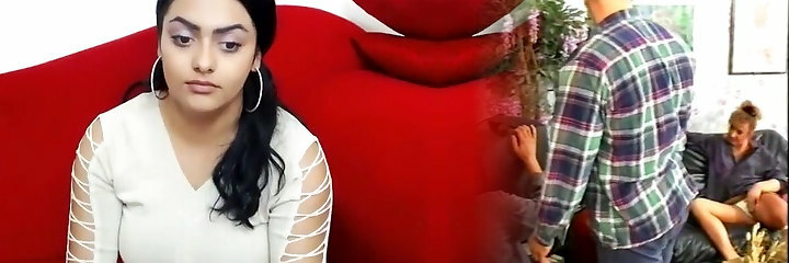 The chick on the couch takes off her home getting off in fron