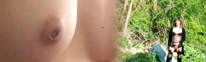 Fucking a female with big Tits in the backside close up