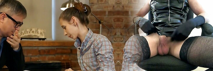 Yummy teenie in white stockings and kilt skirt Jessi gets spanked and romped by stepdad