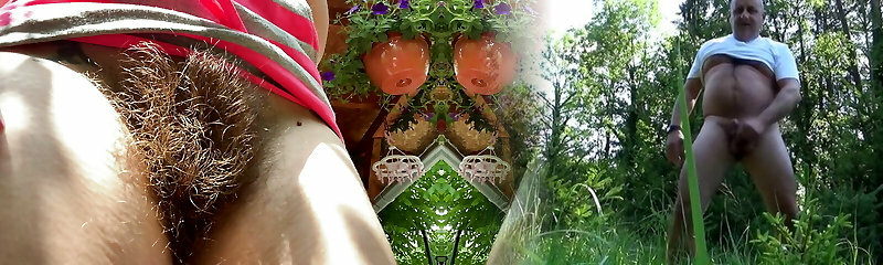 Smoking two cigarettes outside closeup ginormous hairy bush