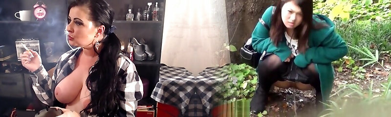 Asian woman pissing and smoking