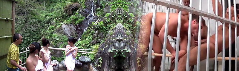 Asiatin haben Gruppensex im freien