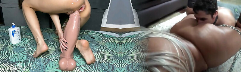 Extreme Insertions Feeding Twat And Ass Hugue Dildos